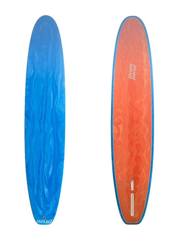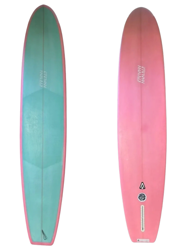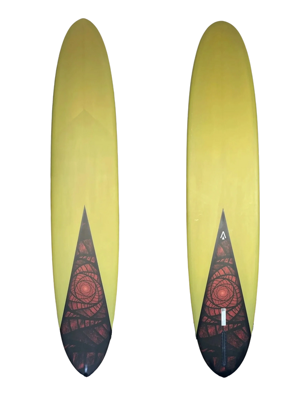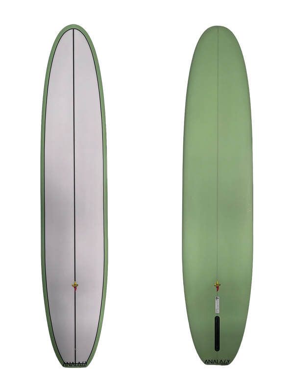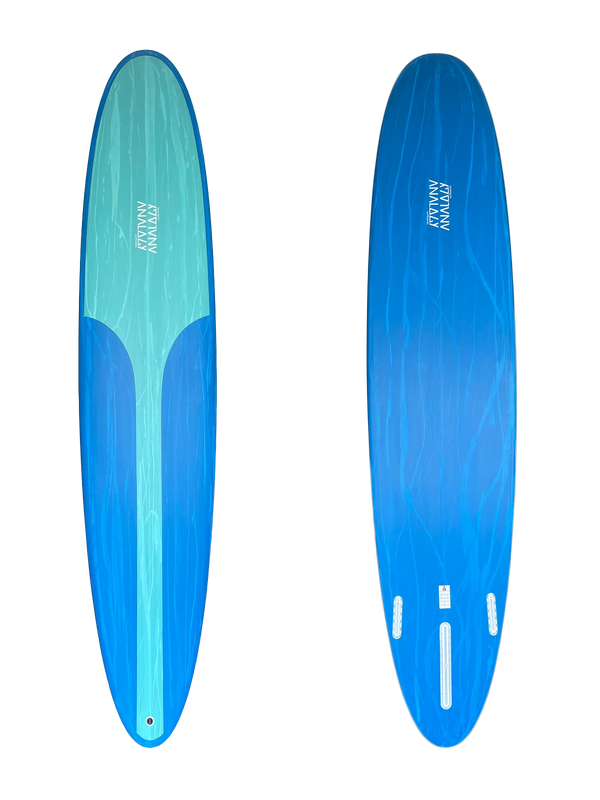 This is an amazing Longboard that is super stable and easy to surf. It has a parallel outline and a wide tail block, this allows the board to trim amazingly through flat sections and it allows for a very stable nose ride. The tail has a reverse rocker in the top that focuses the water into that spot and lifts the nose out the water. This board can ride through sections as well as turn on a dime. This board is best suited with a large rake fin or a nose riding style fin.